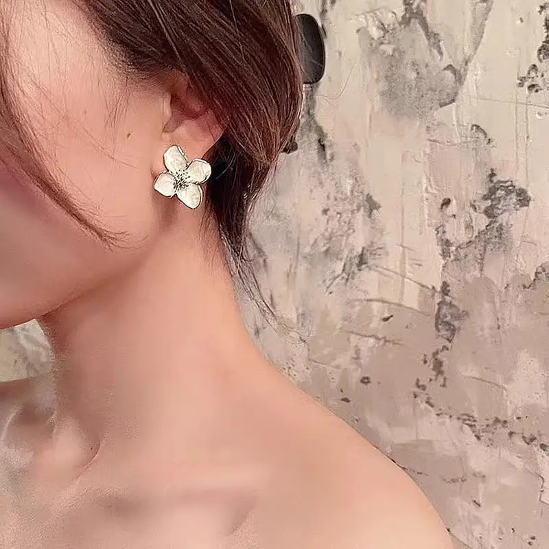 Elegant French-style hibiscus flower earrings with a soft glazed finish. A romantic vintage touch inspired by Korean 2025 fashion — perfect for weddings, parties, or everyday charm.